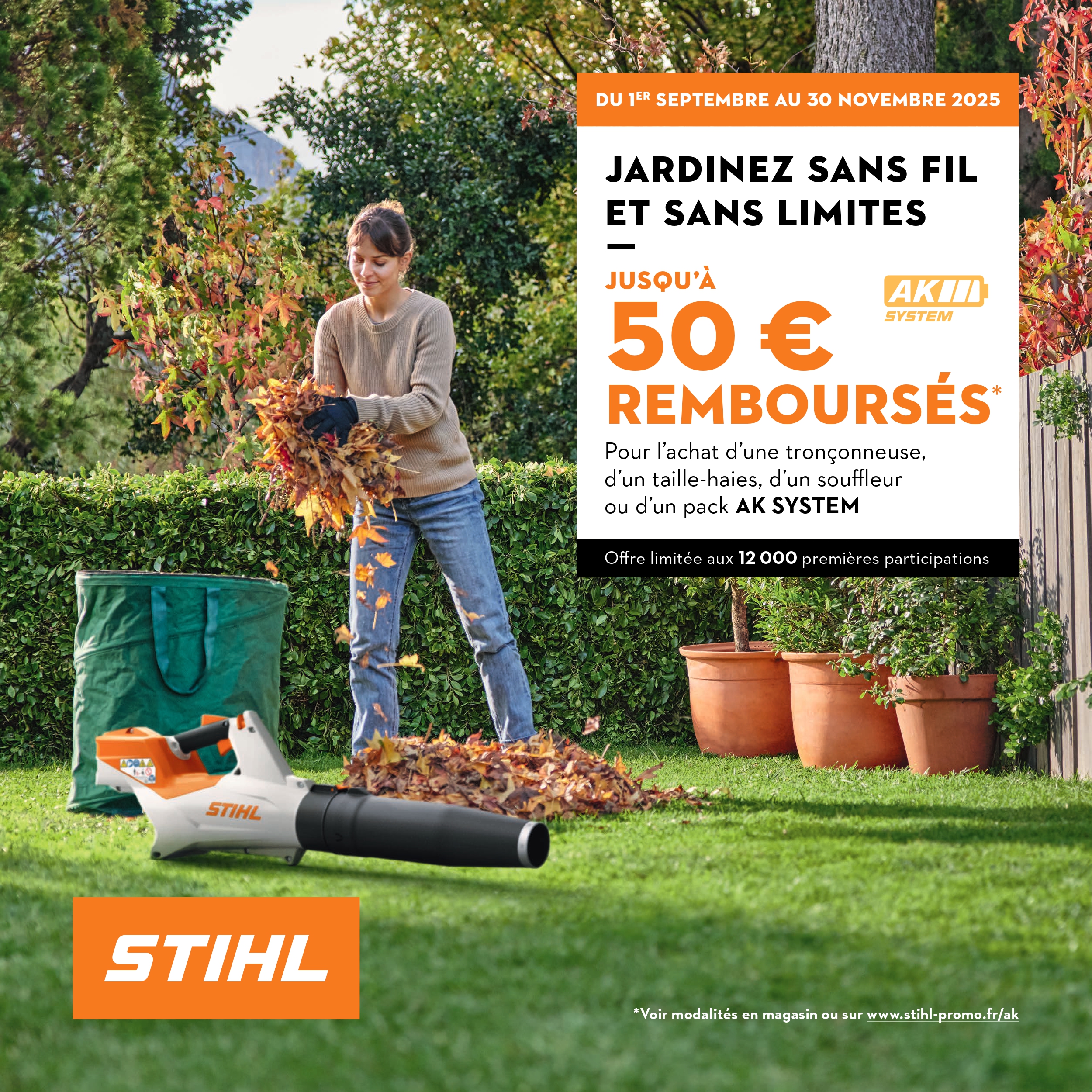 * Montant variable selon le type de produit éligible. Voir modalités en magasin ou sur stihl-promo.fr/ak
